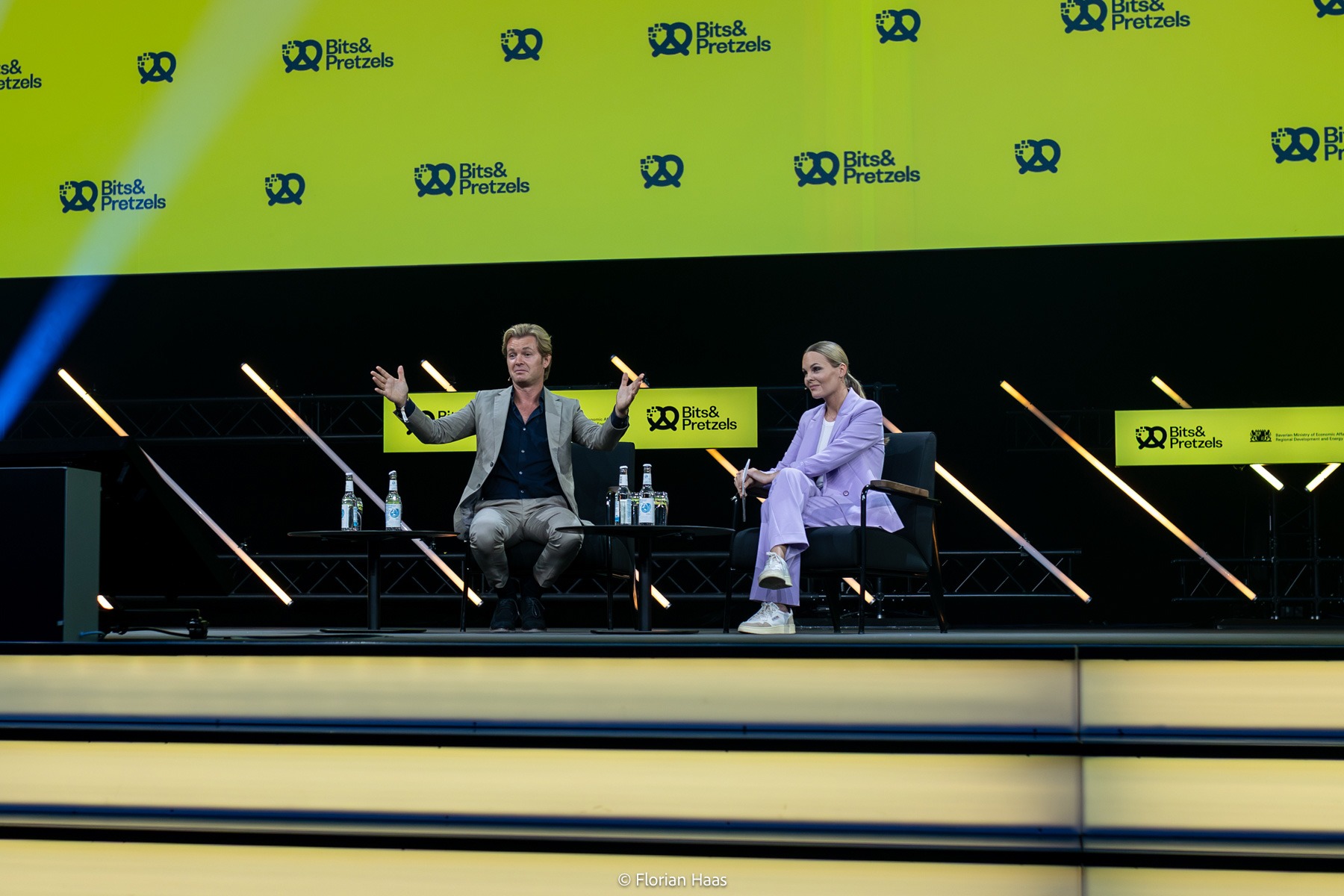 Die folgenden Bilder zeigen zentrale Momente der Bits & Pretzels: Diskussionen auf der Bühne, Moderationen durch Flo Akinbiyi und Lara Sophie Bothur, inspirierende Keynotes sowie Begegnungen im Networking-Bereich.