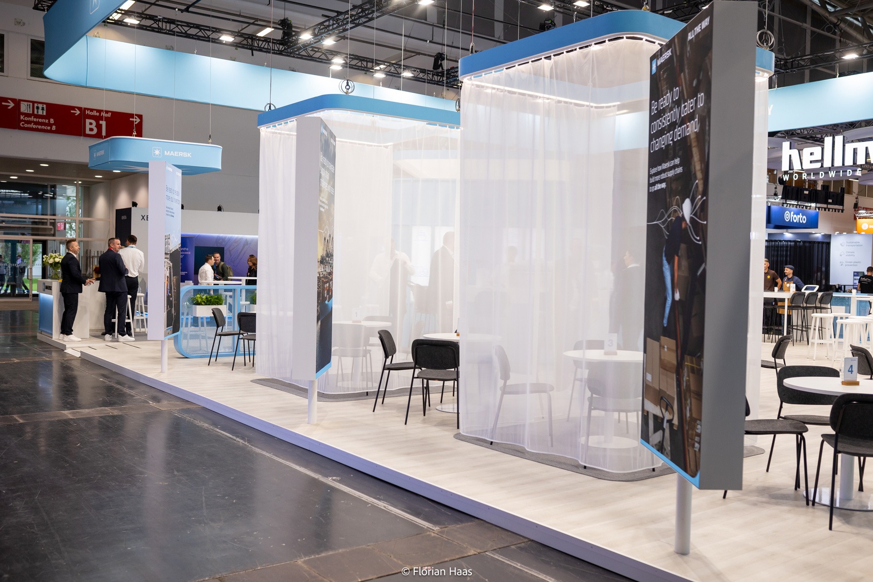 Für MAERSK dokumentierte ich den neu gestalteten Messestand fotografisch im Auftrag der Agentur c.next GmbH aus Hamburg. Ziel war es, das Standdesign sowohl in ruhiger Atmosphäre vor Messebeginn als auch während des laufenden Messebetriebs authentisch festzuhalten.