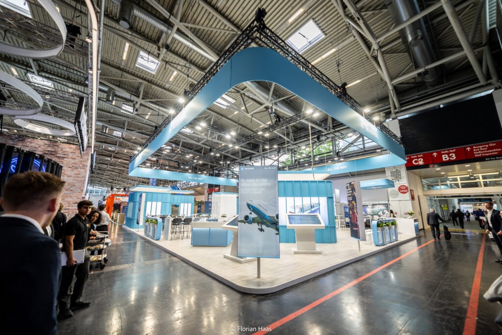 Bereits am frühen Morgen entstanden klare und reduzierte Aufnahmen des vollständig aufgebauten Messestands ohne Besucher. Diese Bilder zeigen Architektur, Branding und die gestalterischen Details des neuen Standkonzepts.